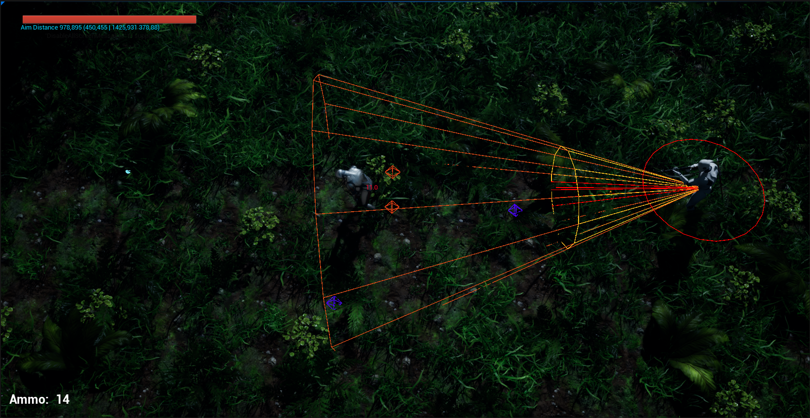 - Visualization of weapon ranges, line traces, and bullet impact points to support tuning and debugging